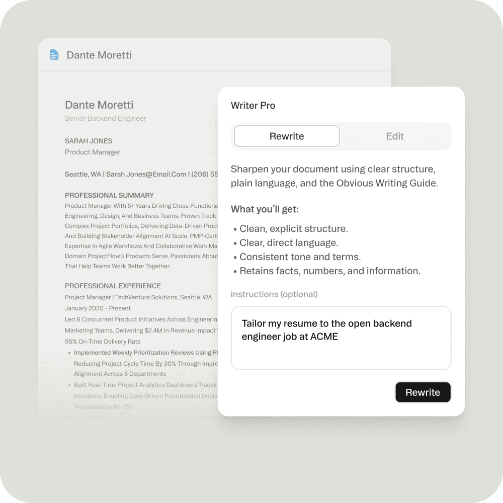 Obvious is the only AI-first workspace where an agent collaborates with you to create real, ready-to-send work product.