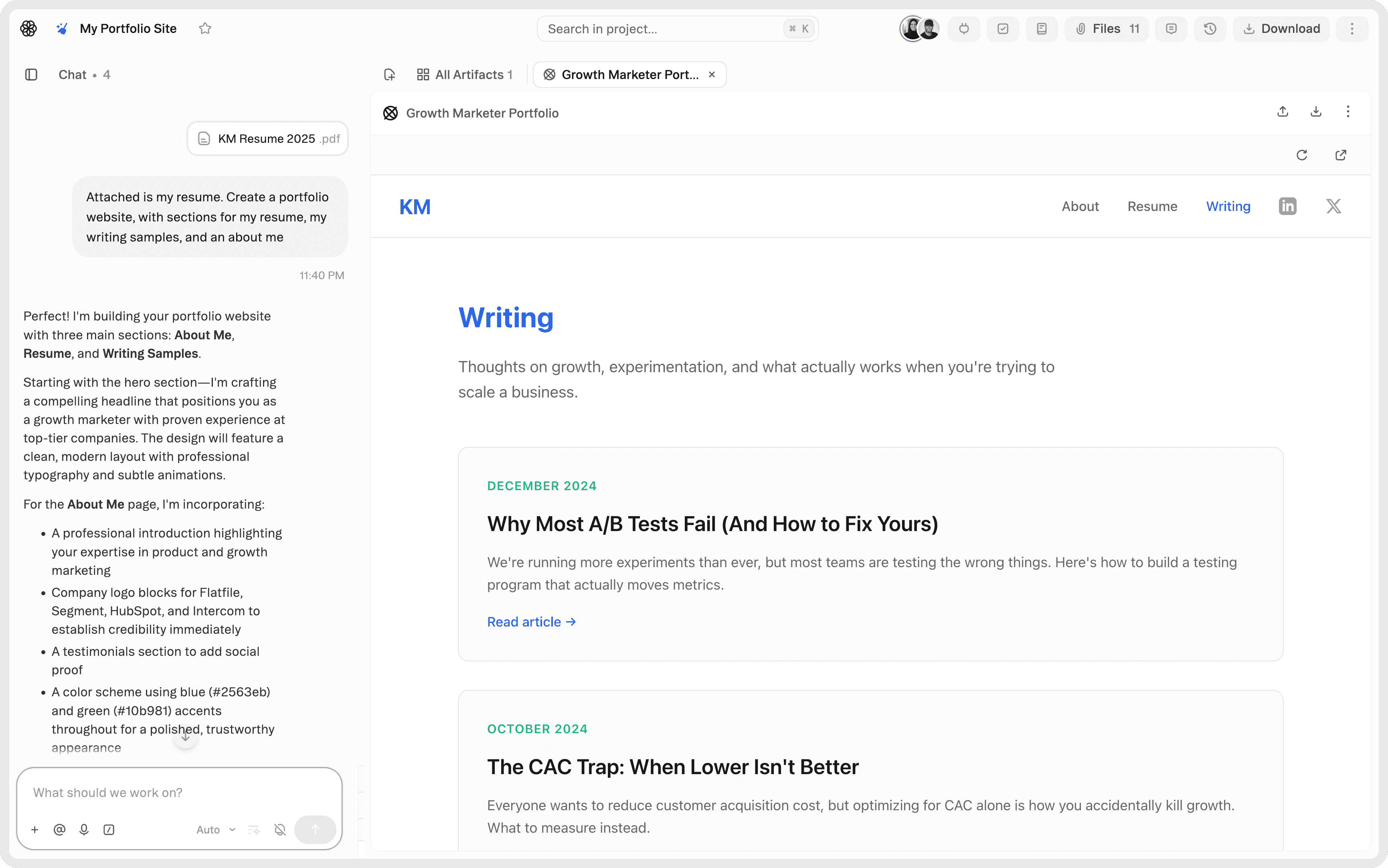 - ✓Interconnected project deliverables vs. standalone artifacts in conversations