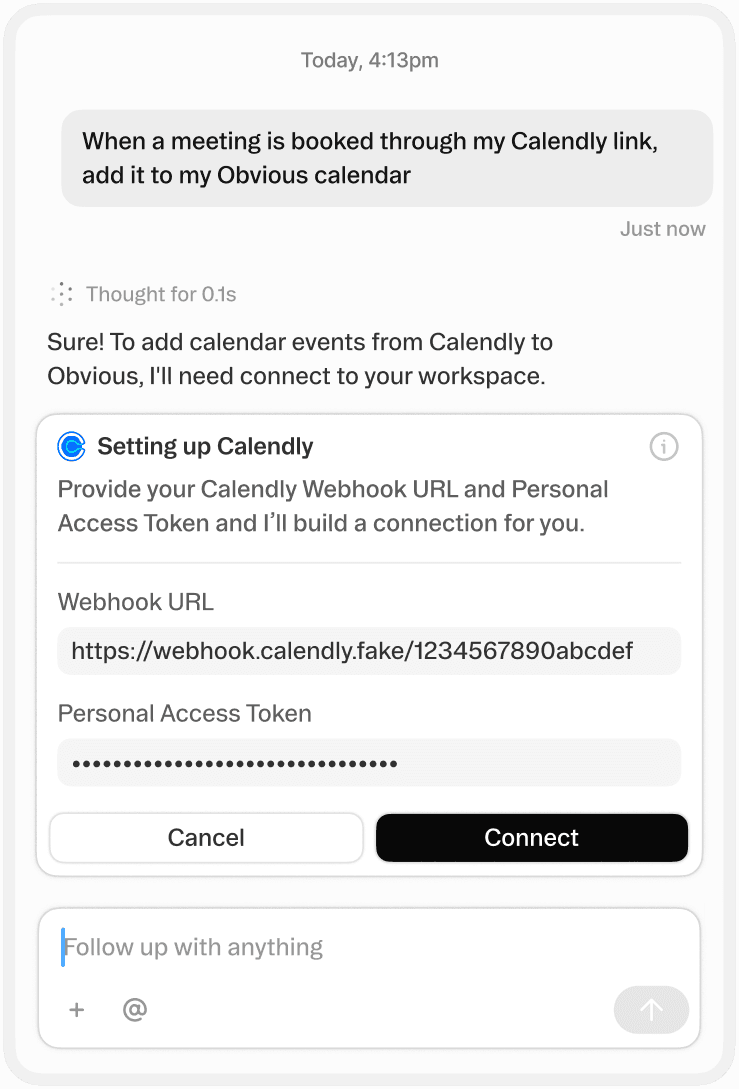 Tell Obvious your desired workflow and it’ll build it for you. Tasks you’re used to doing manually now run while you sleep.