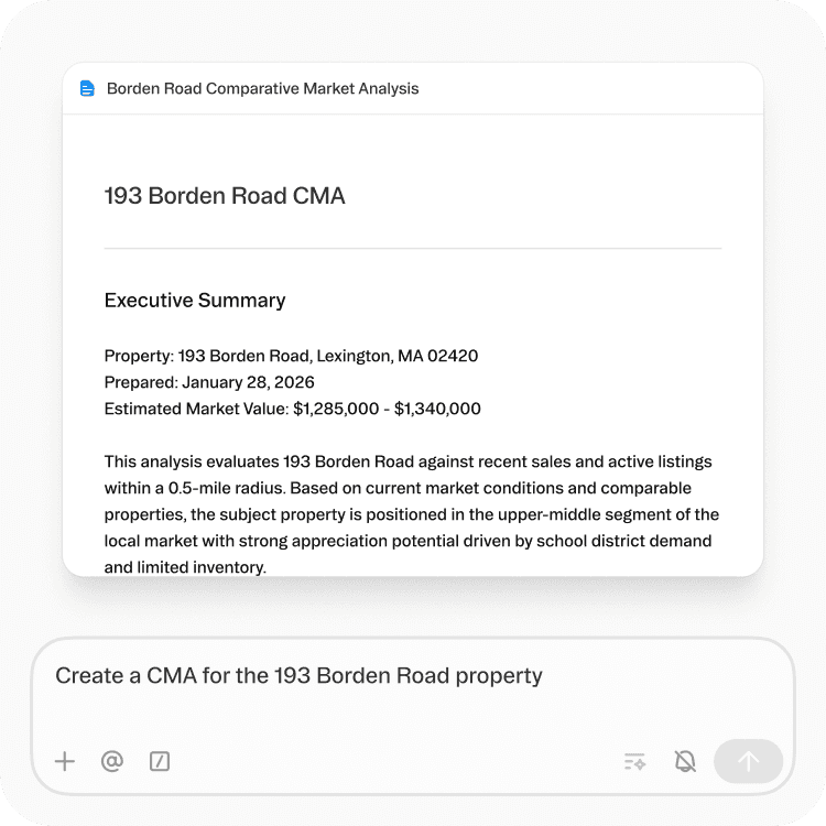 You've got a listing appointment tomorrow. That means pulling comps from the MLS, analyzing market trends, and building a presentation deck.
