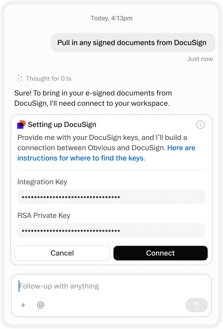 Tell Obvious your desired workflow and it’ll build it for you. Tasks you’re used to doing manually now run while you sleep.