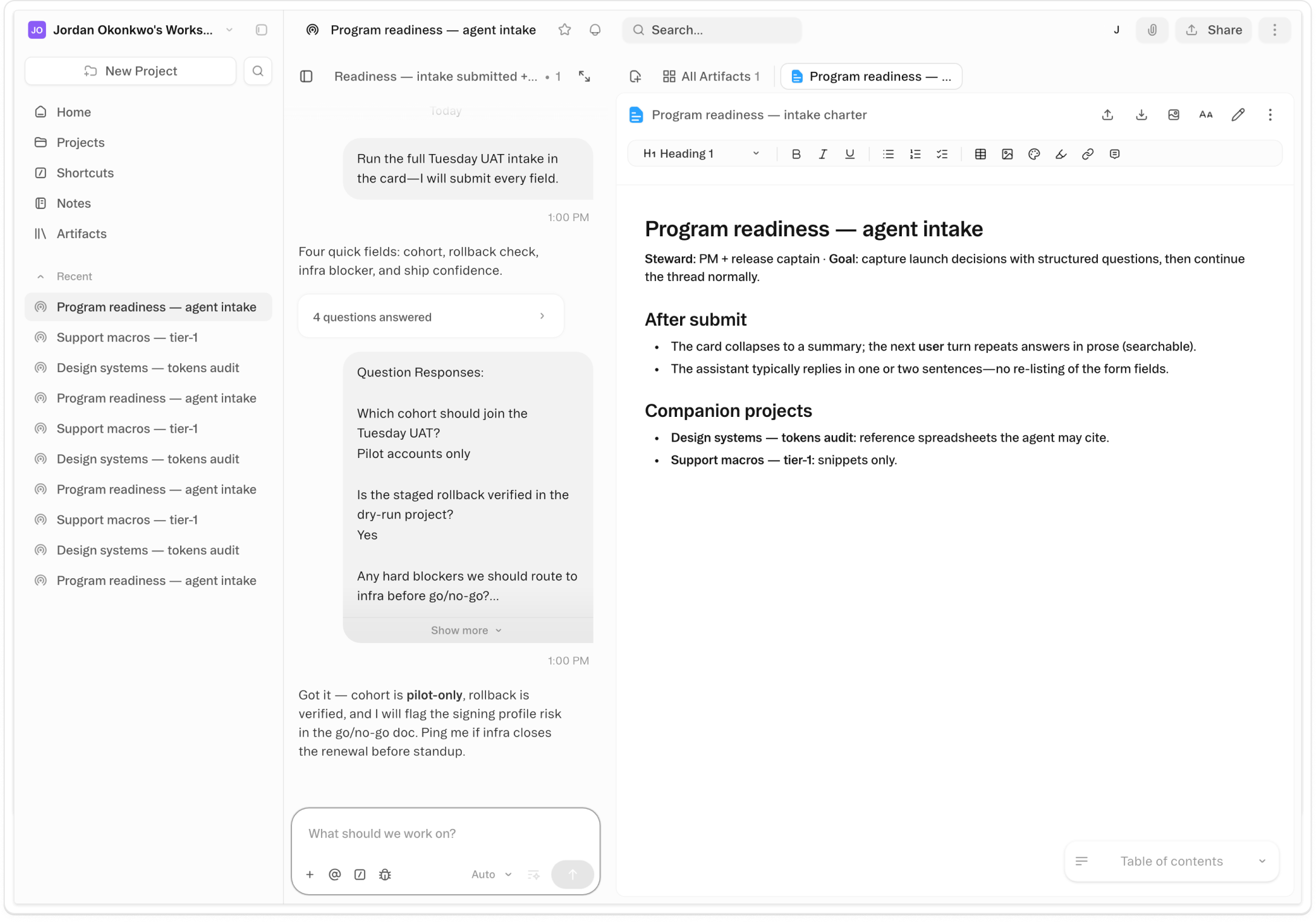 Work starts aligned. No perfect prompt required.